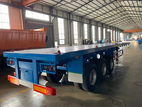 Our standard 3 axles flatbed tractor trailer has a rated load capacity of 60 tons, a well-designed wheelbase, and is made of high-quality Q345 steel, ensuring exceptional durability. Both the exterior color and tire specifications can be customized to meet customer requirements. If you have any questions or specific needs when purchasing a flatbed trailer, Benhe's professional team is dedicated to providing you with comprehensive support.