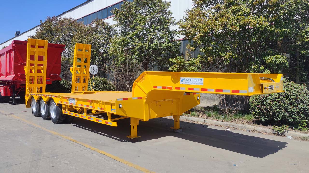 BENHE's low bed trailer features heavy-duty ladders, pressure-resistant steel plate, ensuring it will not deform or break while transporting heavy equipment.