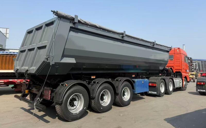 Toutes nos semi-remorques à benne arrière sont soumises à des processus de sablage, d'élimination de la rouille et de peinture au four, garantissant une finition lisse et durable qui ne s'écaillera pas même en cas d'exposition prolongée au soleil. Avant l'expédition, les remorques sont enduites de cire et recouvertes de bâches imperméables pour éviter la corrosion pendant le transport maritime.